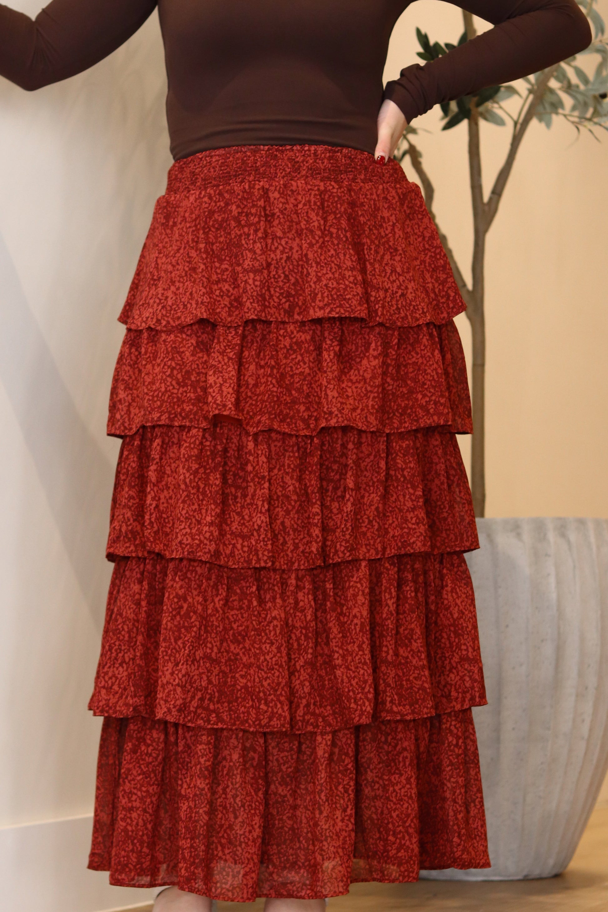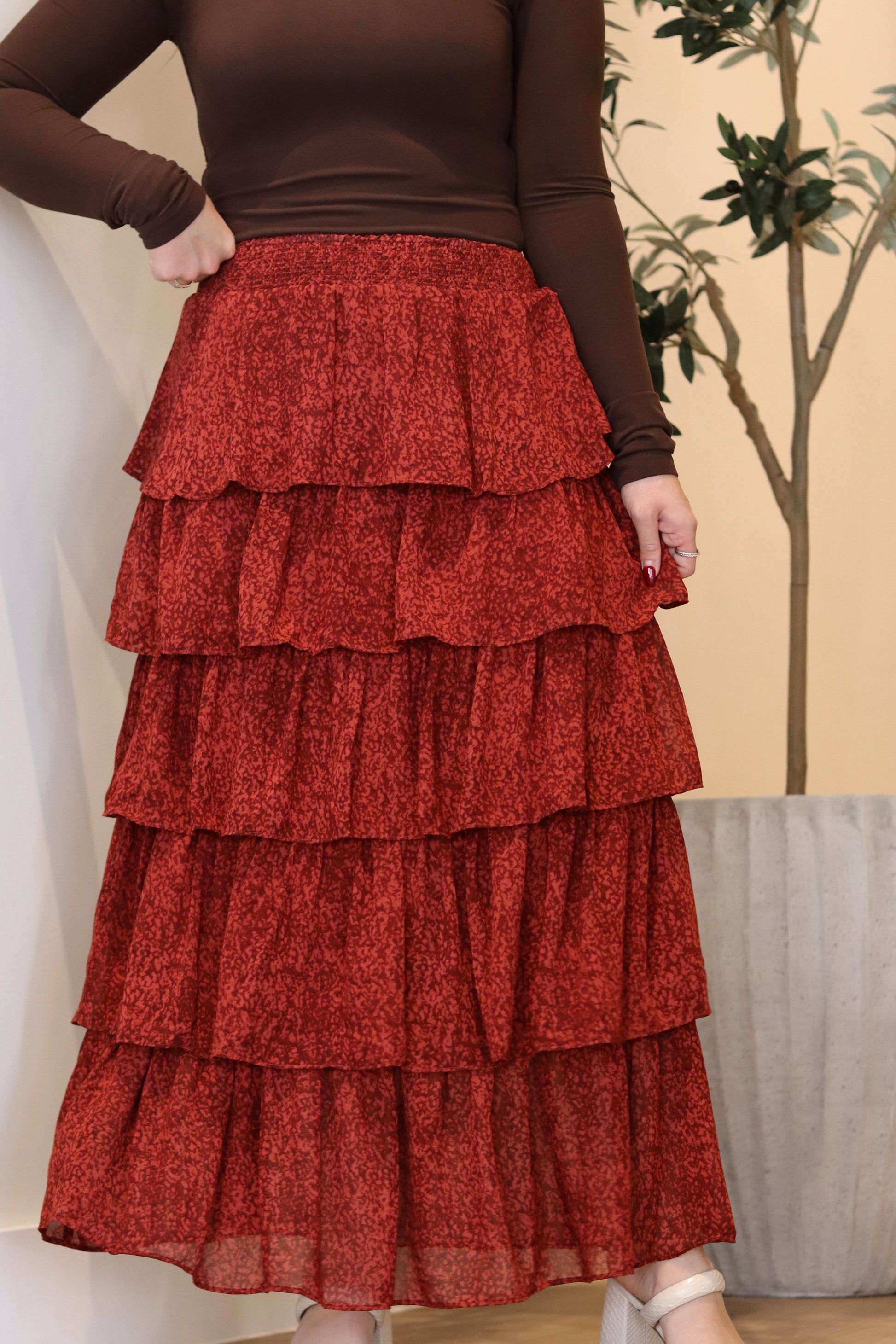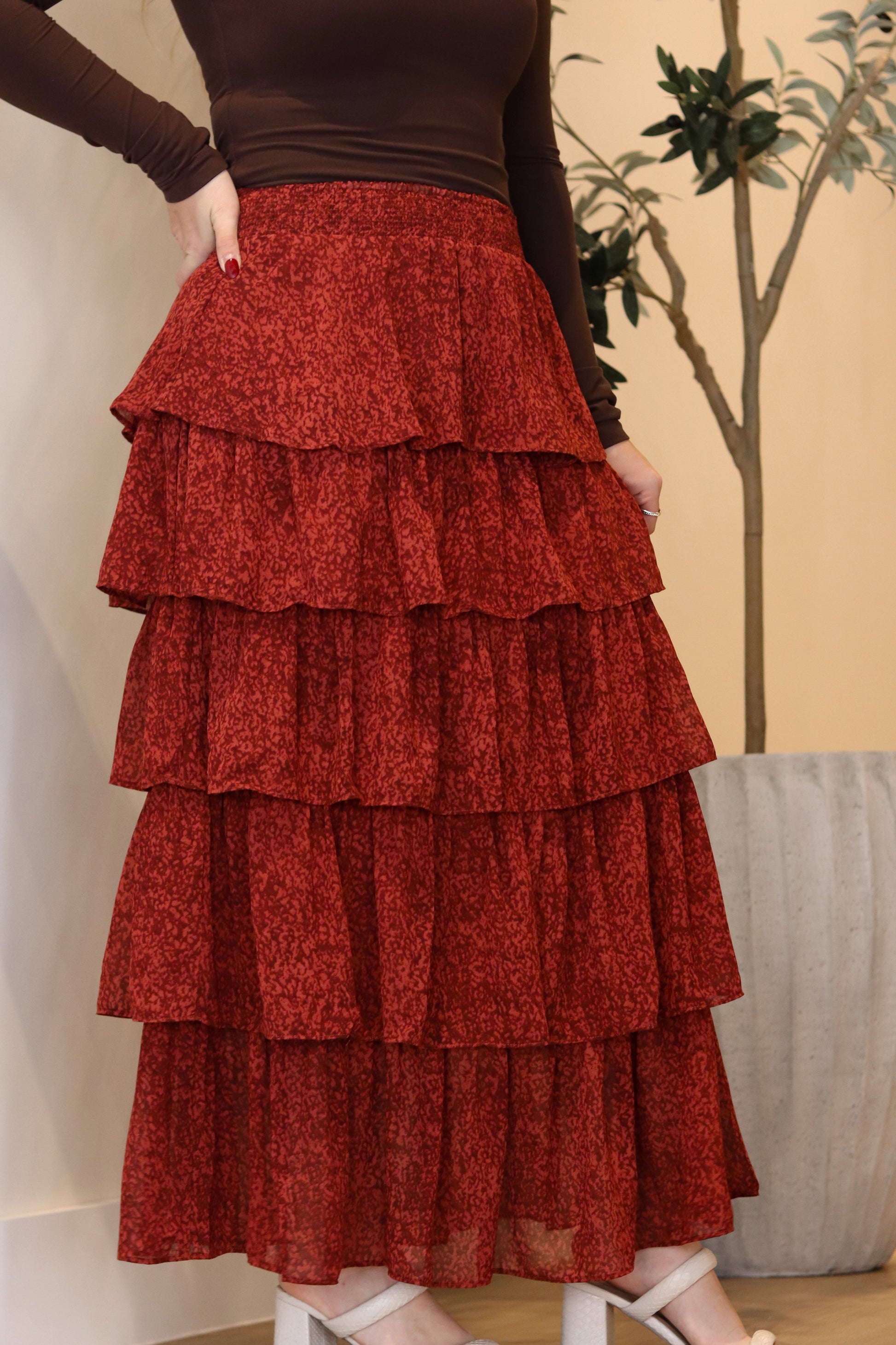 The Thankful Maxi Skirt is a rich, graceful staple for the season. Its deep burgundy hue and tiered silhouette create a flowy, feminine look that feels perfectly at home at Thanksgiving gatherings or any cozy fall outing. Pair it with knits, bodysuits, or boots for an effortlessly elegant autumn style that moves beautifully through every celebration.