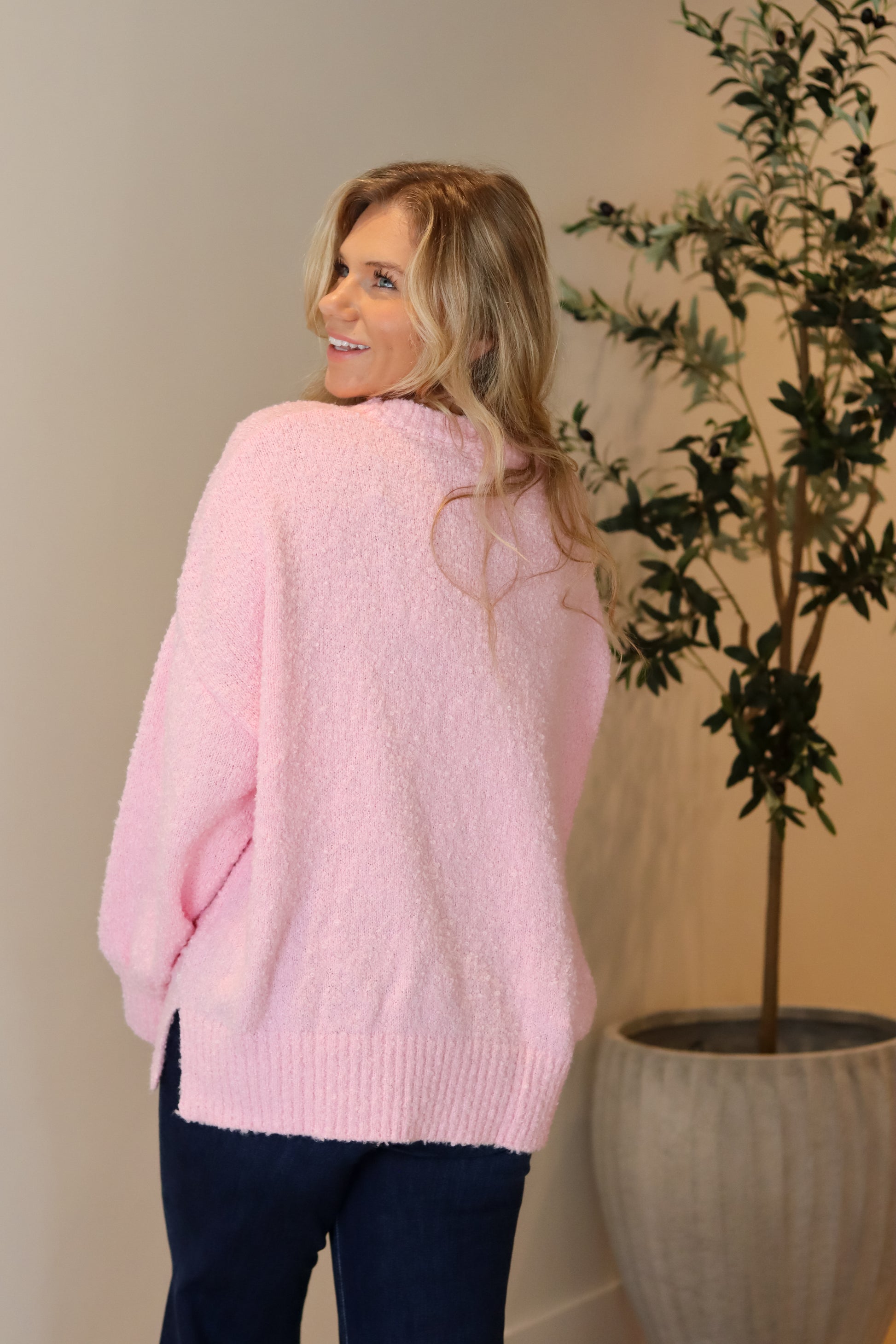 Soft, sweet, and full of festive charm, the Coquette Christmas Tree Sweater brings a playful twist to classic holiday style. The light pink knit sets the perfect backdrop for a white Christmas tree adorned with 3D ribbons and dainty bows woven throughout. Cozy yet eye-catching, this sweater adds a coquette-inspired flair to cookie swaps, holiday parties, and every merry moment in between.