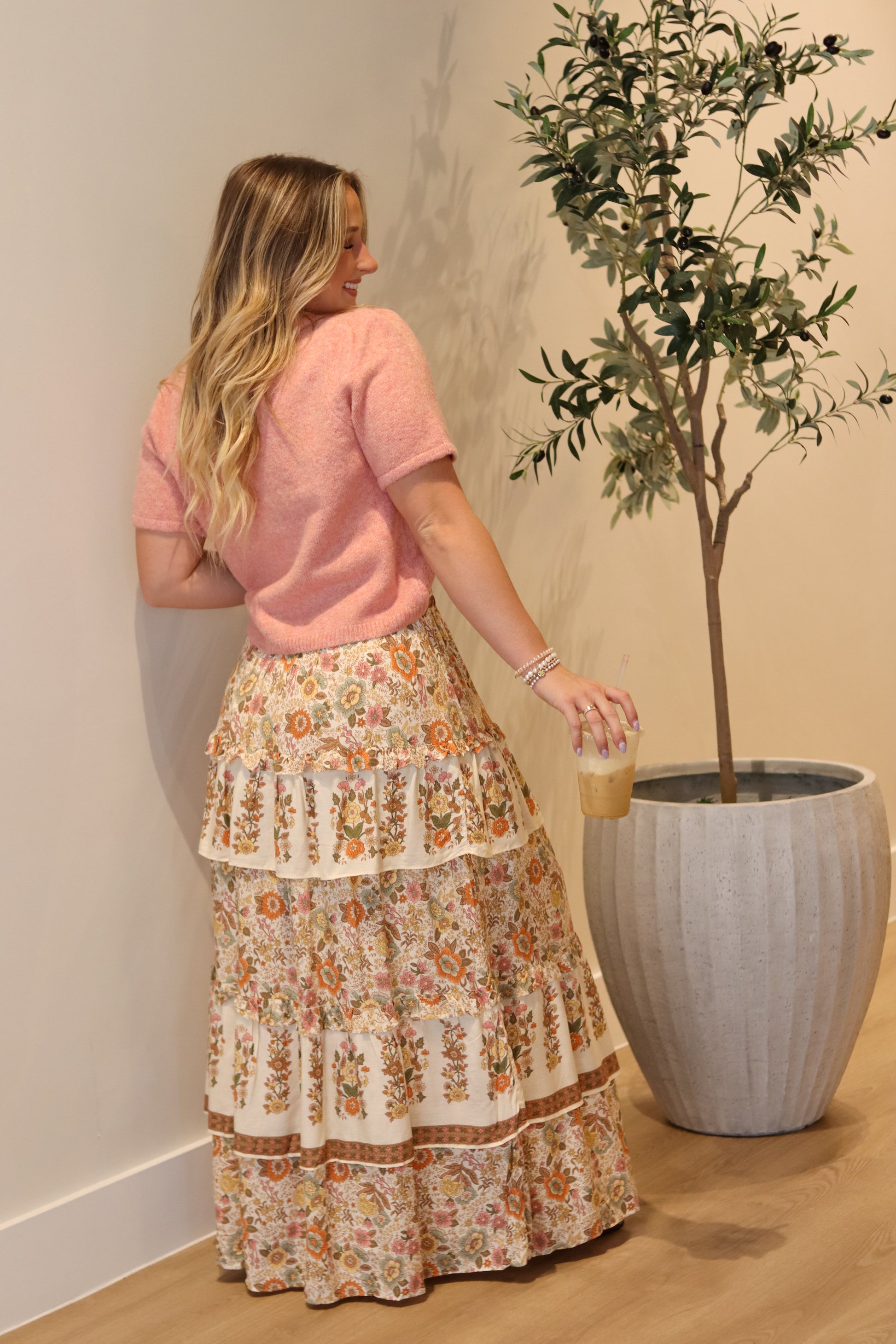 The Autumn Maxi Skirt brings all the cozy fall vibes with its cream, multi-color floral pattern and tiered silhouette. Featuring a comfy stretchy waistband, this flowy skirt pairs perfectly with sweaters and boots for an effortlessly feminine fall look.