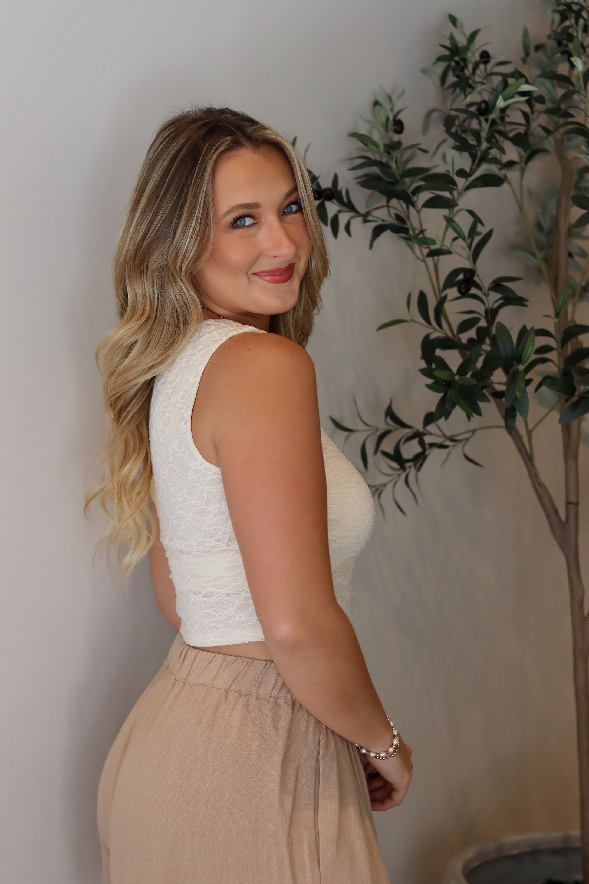 The Jessie Lace Tank is the perfect blend of feminine and flirty. Featuring delicate lace detailing and a soft, flattering fit, this tank adds a romantic touch to any outfit. Whether paired with denim for a casual look or layered under a blazer for the office, the Jessie is a versatile piece you'll reach for again and again.
