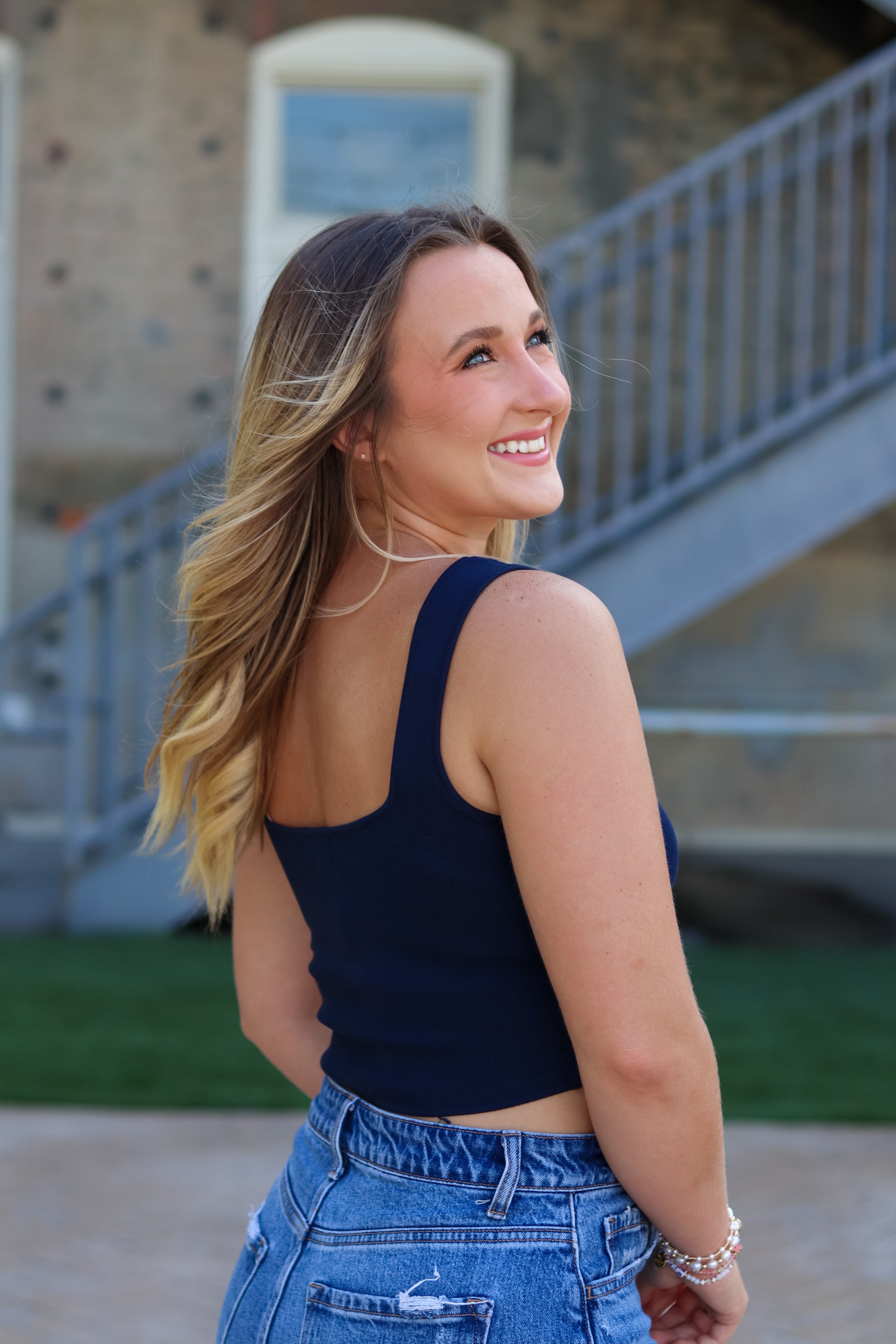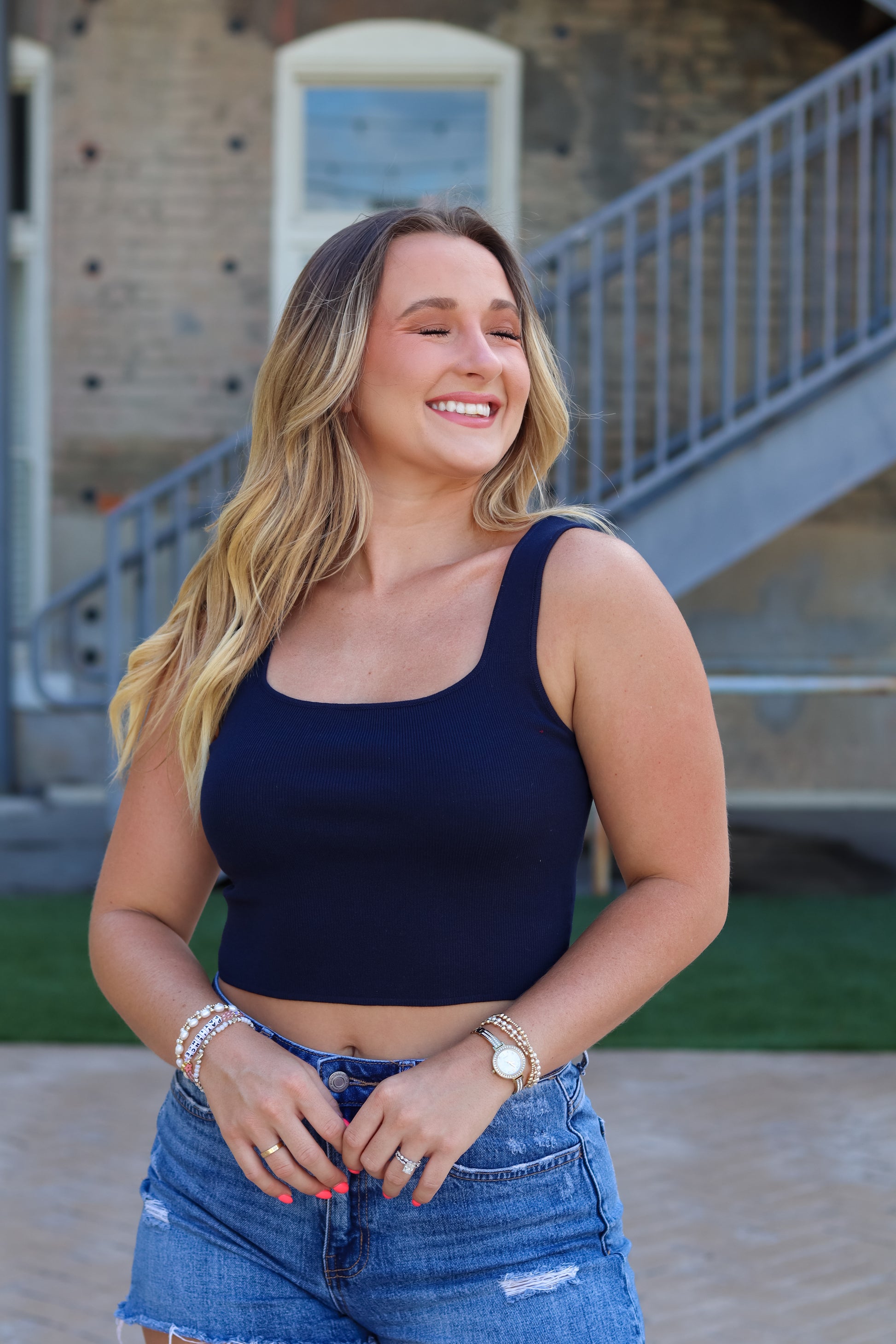 Keep it classic with the Ole Glory Knit Tank! This basic cropped tank offers a soft, comfortable fit with clean lines—perfect for pairing with high-waisted jeans or layering for an easy, everyday look.